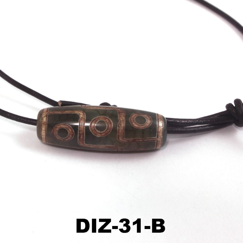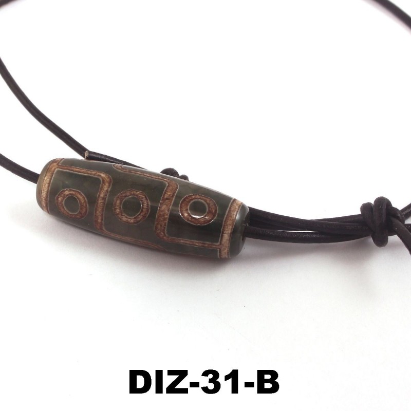 Dzi-Stein, Tibetischer Achat, grünlich, Kette mit Büffellederband